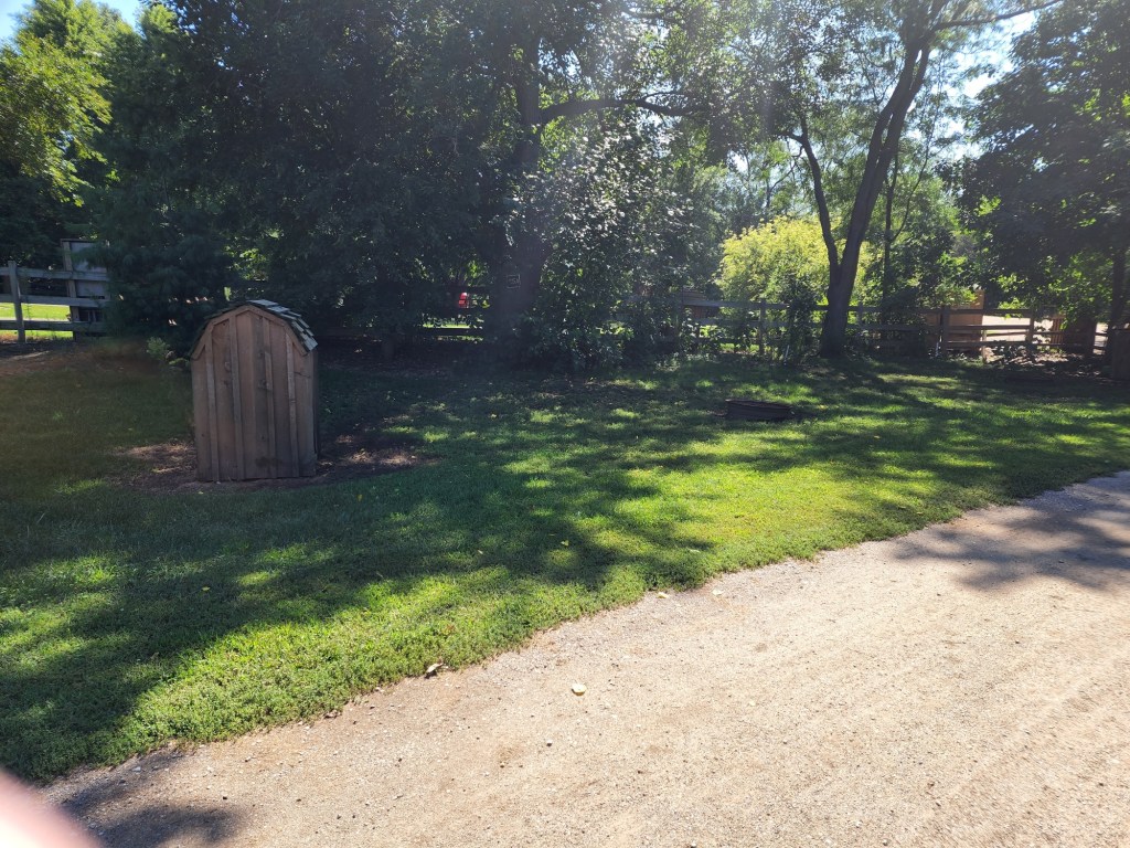 Just a bit down the path, site 26A will be ahead of you across the path, once you have cleared the red roof building.